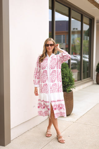 The Carmella Tunic Dress – Swiss Dot Pom Detail, V-Neck, Lined & Lightweight